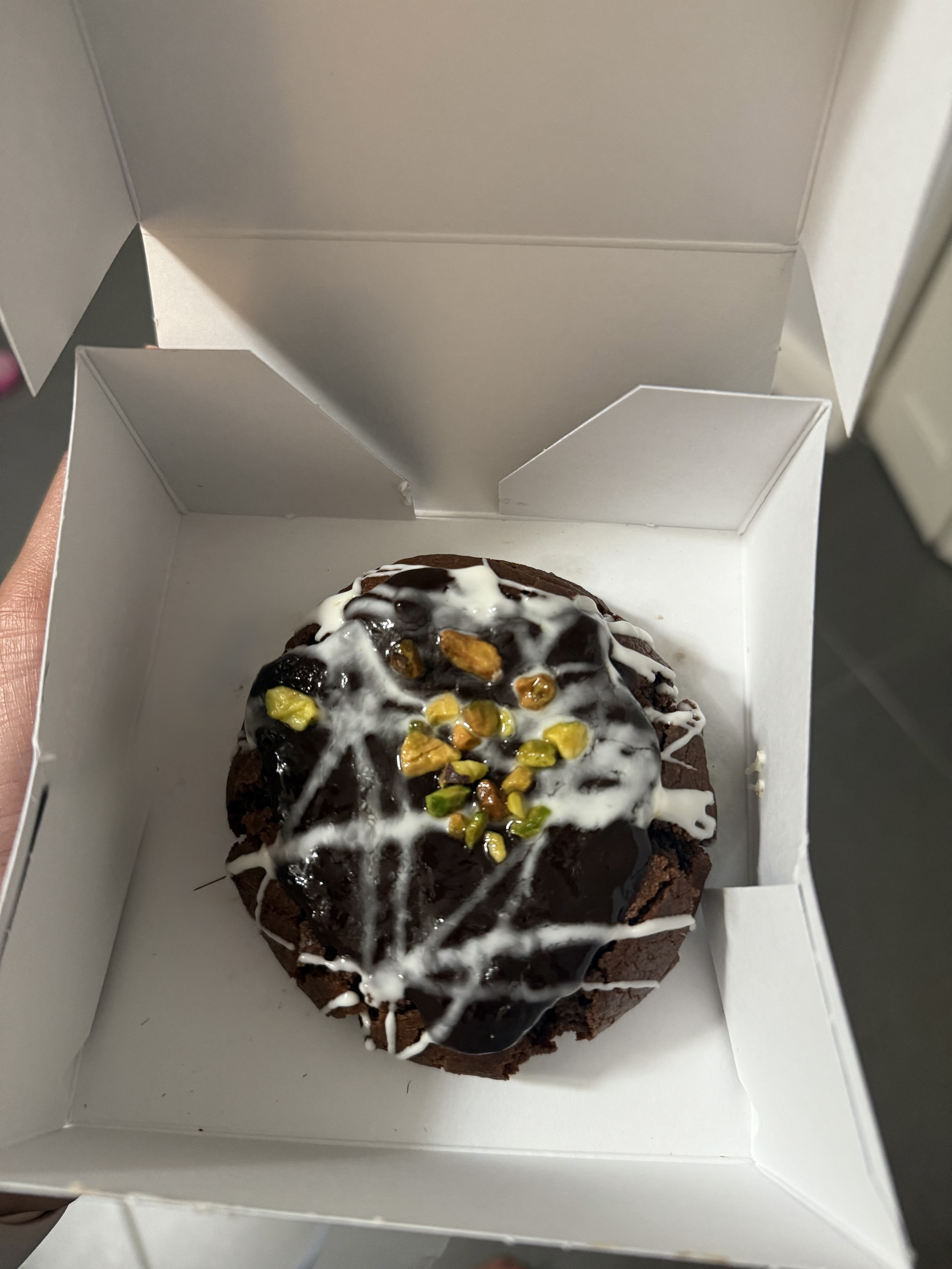 While this one may rank as the least photogenic treat on the list, for the month of May, cookie lovers can snag Blueprint’s version on the trend with their Dubai Chocolate Cookie. As the name hints, this cookie is a chocolate base, filled with pistachio cream crunch on the inside, finished with a thick layer of chocolate ganache, white chocolate drizzle, and sprinkles of crushed pistachios on top. It’s a gooey, over-the-top take on the trend and a must for cookie enthusiasts.