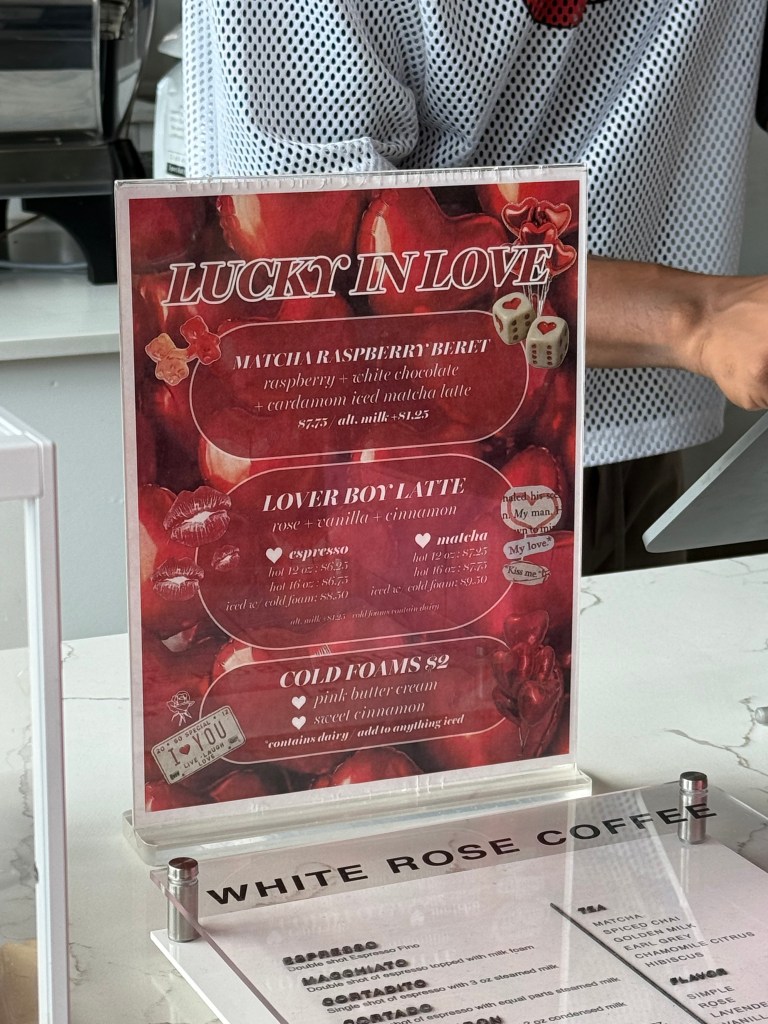 White Rose Coffee delivers a matcha experience that’s hard to forget. Their Valentine’s Day special, the Matcha Raspberry Beret, blends matcha, white chocolate, and aromatic cardamom. Finished with a pink butter cream cold foam, it was bound to be a promising love at first sip. If the holiday drink is any indication, their regular matcha offering is likely just as delicious. Visit their website here.