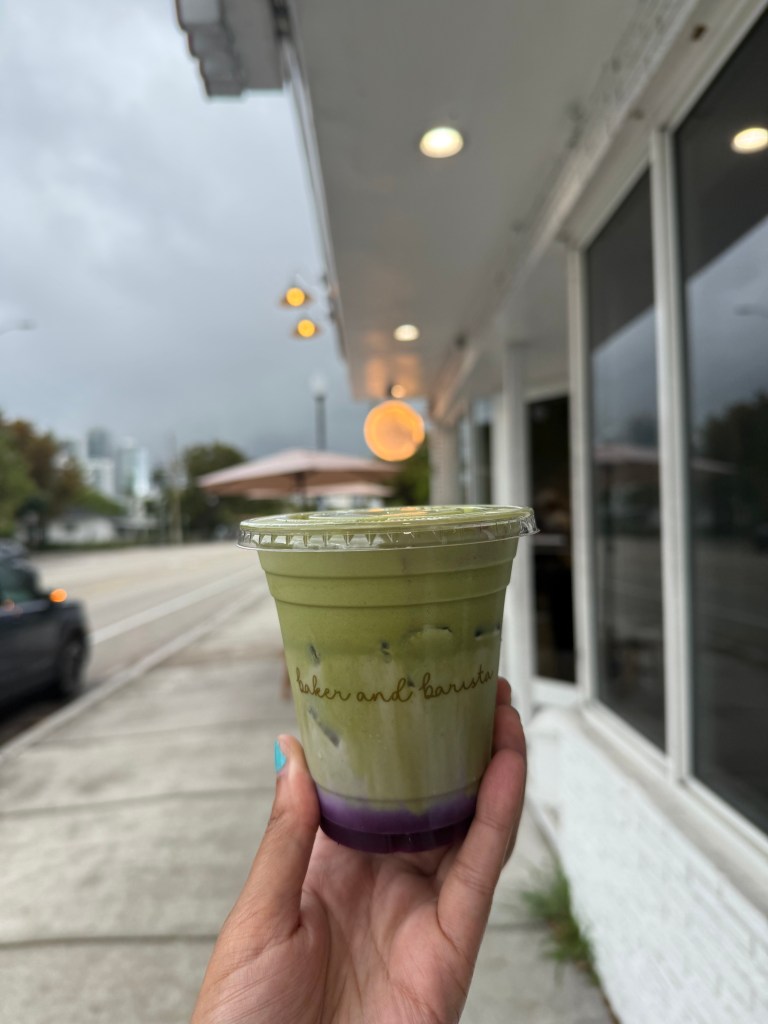 At Baker and Barista, the matcha leans soft, creamy, and indulgent. Their signature oat milk matcha with coconut cold foam creates a smooth, dreamy texture that’s easy to love. The lavender ube version takes it a step further, layering in floral and sweet notes for a truly unique matcha drink. Visit their website here.