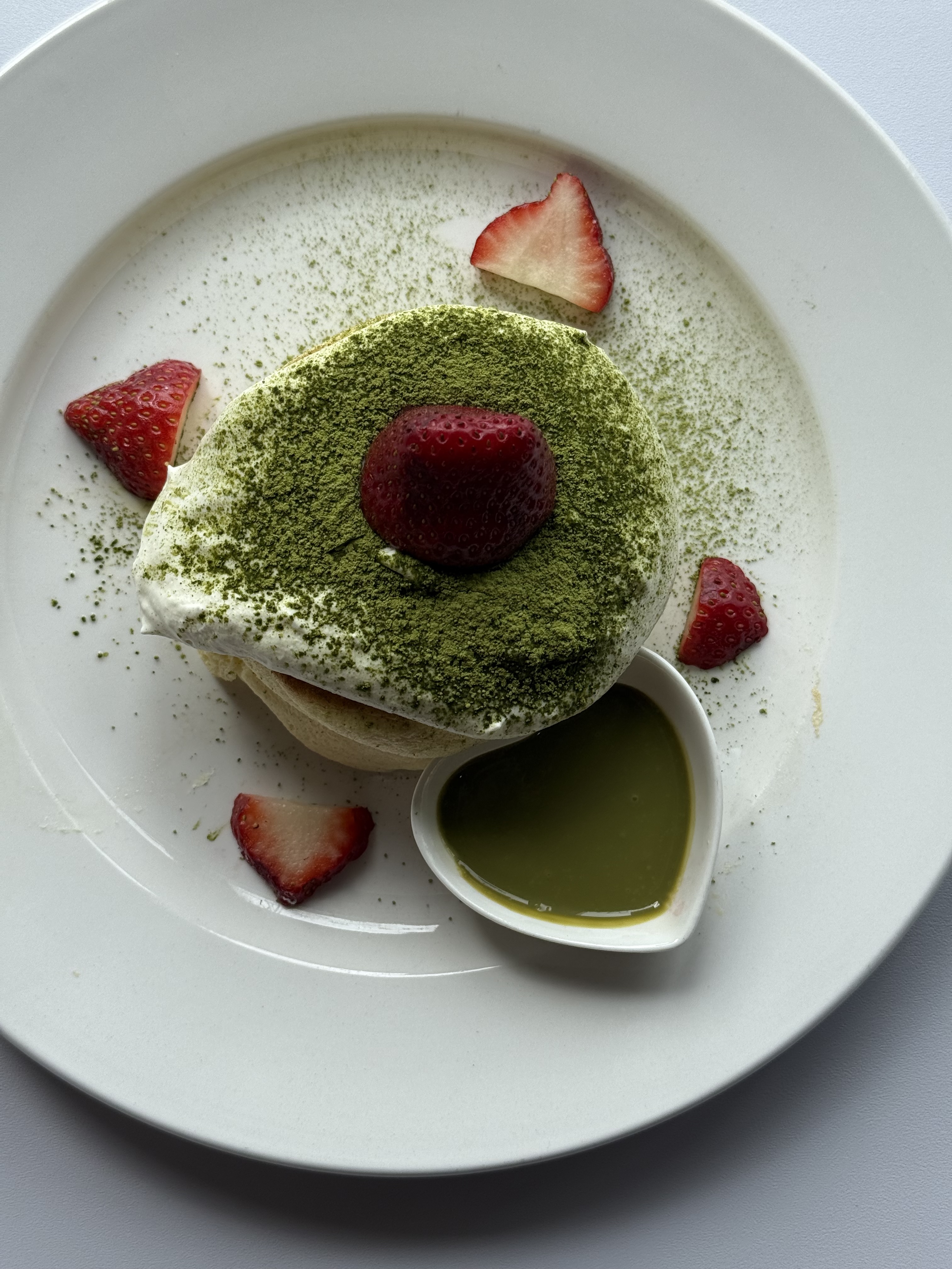 For a playful and more interactive twist on matcha, Fluffy Fluffy serves Japanese-style soufflé pancakes topped with matcha powder and a silky matcha cream pour-over. Light, airy, and delicately balanced, each pancake bite complements the bold matcha flavor while offering a fun way to get your matcha fix. While a departure from the traditional matcha drink, it’s a guaranteed whimsical way to experience matcha. Visit their Instagram here.